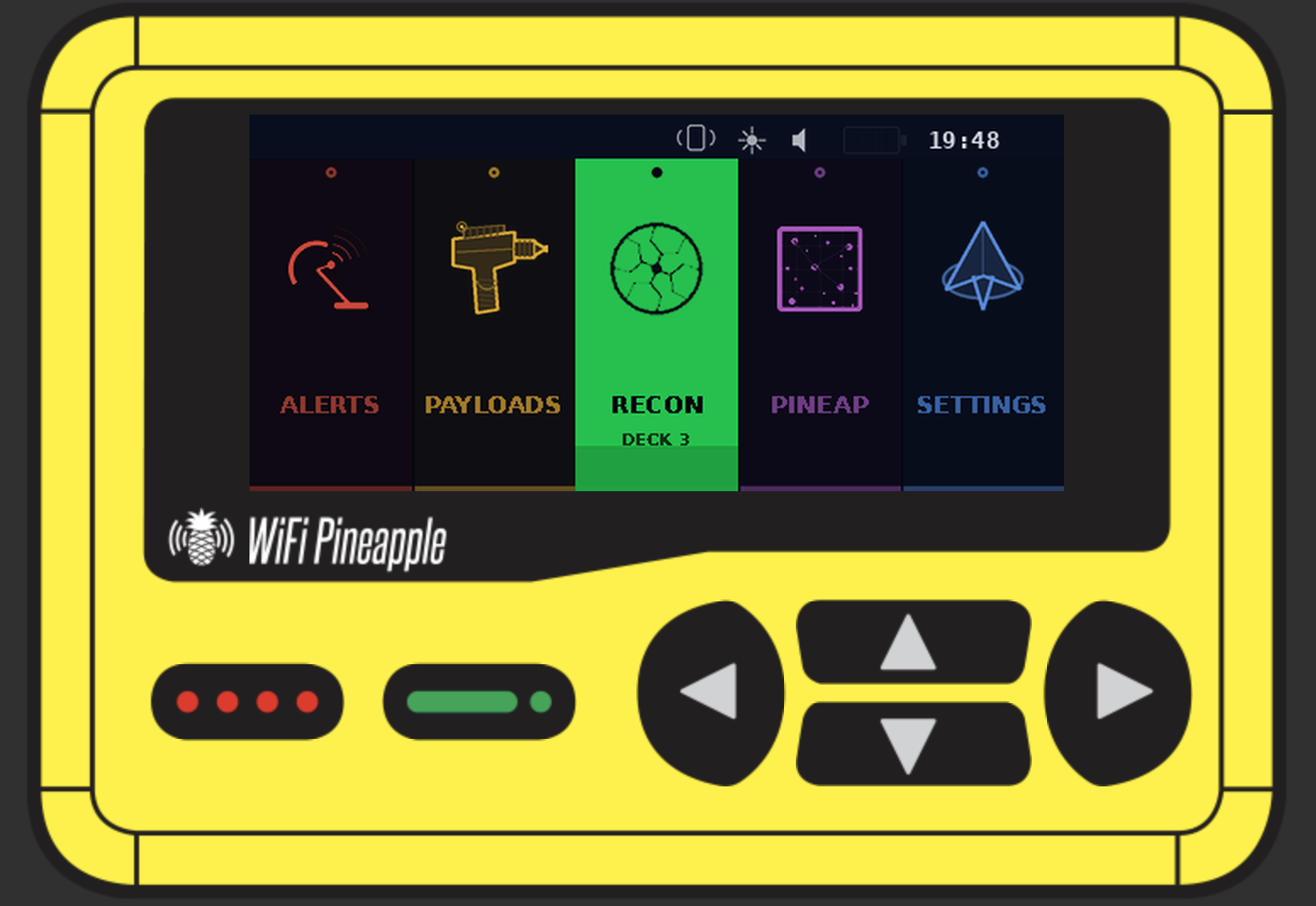 0 starsDark utilitarian theme for the Hak5 WiFi Pineapple Pager. v1.0.0 — 187 programmatically generated assets with section-specific accent colors, 3x supersampled rendering, and full UI coverage.