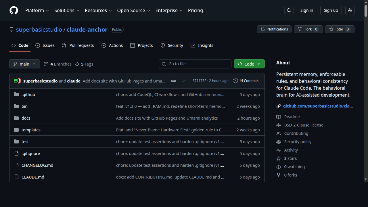 4 starsA behavioral context framework for Claude Code that gives your AI persistent memory, enforceable rules, and session continuity.