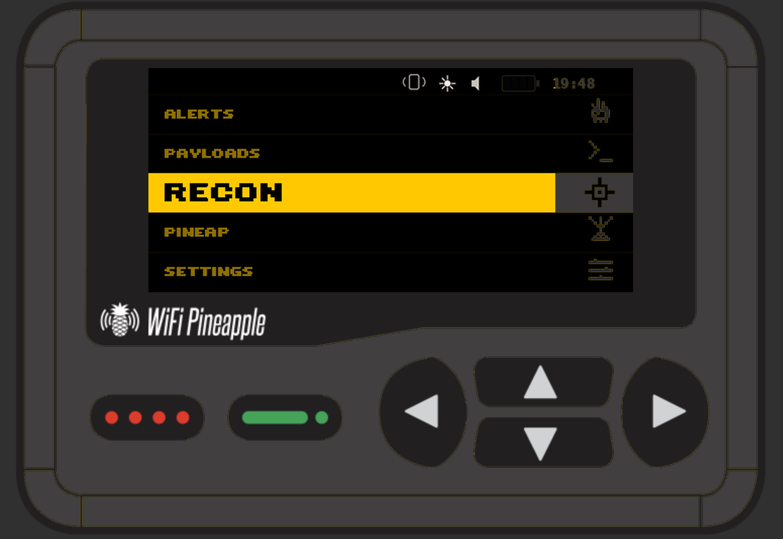 0 starsHigh-contrast black and yellow theme for the Hak5 WiFi Pineapple Pager. 261 programmatically generated assets, custom 8-bit pixel art icons, WOPR boot animation, and full UI coverage.